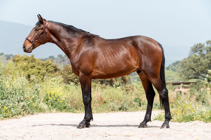 Magnifique Lusitanien de grande taille. Shakur a un caractère très doux. Il montre un excellent galop en montée et sa démarche est souple et correcte, avec un beau débordement. Conviendrait pour le dressage.