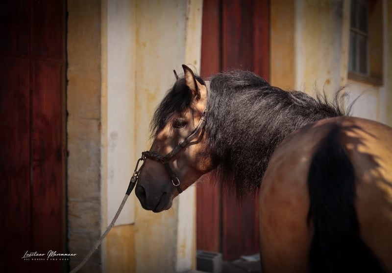 Lusitano in special color – 1.70 m – A real eye-catcher with a gentle nature Features: - Breed: Lusitano - Gender: Gelding - Year of Birth: 2022 - Color: Buckskin - Height: 170 cm This extraordinary three-year-old Lusitano gelding captivates not only with his rare special color (Buckskin) but especially with his impressive height of 1.70 m, making him a true standout – whether in the arena, on the trails, or perhaps even at a few competitions in the future. He displays a very calm, people-oriented, and balanced character. Currently, he is being calmly introduced to lunging – with plenty of time and patience for healthy development. With his charming nature and appearance, he has everything it takes to become a loyal leisure partner in the future – whether for relaxed rides, working equitation, or perhaps as a highlight at a small competition or shows. An exceptional horse for those seeking something special. I can gladly provide more pictures and videos upon request.