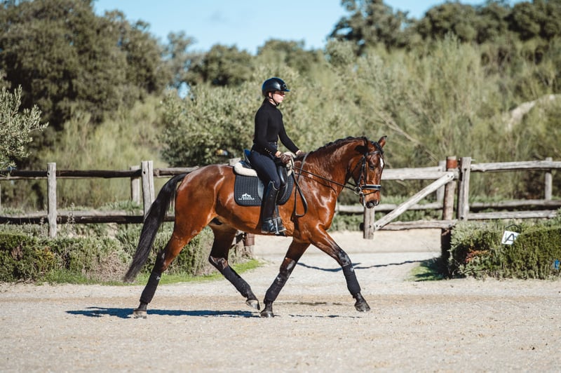 Magnifique Lusitanien de grande taille. Shakur a un caractère très doux. Il montre un excellent galop en montée et sa démarche est souple et correcte, avec un beau débordement. Conviendrait pour le dressage.