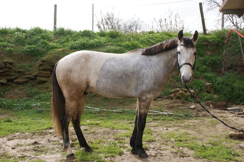 Poni D Lusitano de 5 años en venta. Lusitano de 5 años, 1,47 m (Poni D), con buen carácter y actualmente en proceso de formación. Actualmente se encuentra cedido hasta el 30 de junio, momento en el cual estará disponible para la venta. En casa está saltando alrededor de 0,80 m. Caballo aún verde, en evolución, trabajado tanto por amazona de nivel medio como por jinete con más experiencia. Y está iniciado en competición en 2026. Es un caballo sensible y algo asustadizo, por lo que agradece un trabajo progresivo y un jinete que le aporte confianza. Debido a experiencias pasadas en el salto, se está trabajando con calma, mostrando mejoras constantes. Destaca por su gran corazón, actitud positiva y ganas de hacer las cosas bien. Caballo activo, trabajador y con buena disposición. Tiene muy buen carácter pie a tierra: tranquilo, curioso, paciente y seguro con niños. Es sociable con otros caballos y sale al campo sin problemas. El precio es acorde a su nivel actual de formación. El precio aumentará a medida que avance su progresión y experiencia Más información y vídeos disponibles por privado