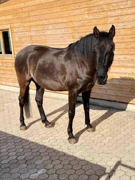 Rulu – Sensitive Lusitano Gelding with a Big Heart Seeks His Person Rulu is a nearly 5-year-old black Lusitano gelding, imported from Portugal (bred by Sabine Rolfs). I first met him as a 3-month-old foal, together with his mother – and I immediately fell in love with him. His mother is a beautiful, extremely gentle and calm black-brown mare, and his sire is a striking black dressage stallion (pedigree available in the "Blue Book" of the APSL). Since then, Rulu has been living in the Westerwald in a herd of geldings in an open stable environment and is well socialized. His gelding operation was performed smoothly at the age of 2.5 years. Training & Handling Rulu reliably knows the basics of foalhood. Trailer loading, farrier visits, and veterinary care are routine for him, as are regular vaccinations, deworming, and dental checks. He enjoys walks both alone and in company and is familiar with playful horsemanship work in the round pen. PSSM test as a foal: negative He is currently lunged several times a week. He has also gained initial experience under saddle on the longe line – mounting and dismounting, and accepting rider weight with complete calmness. Character Rulu is very human-oriented, sensitive, and perceptive. He is eager to learn, affectionate, and well-mannered. He actively seeks closeness with “his” person and forms a strong bond. Developmental Stage Rulu is a late developer – both physically and mentally. He is currently about 16.2 hh and is expected to grow a little more. He needs time, security, and calm, clear guidance. Under pressure, he can become quickly overwhelmed – however, with the right person, he shows great willingness to learn and motivation. Who is he suitable for? I am looking for a dedicated person to be Rulu’s main handler – someone with a lot of empathy, solid horse knowledge and training experience, patience, and time. He is not a horse for quick competition goals but has great potential for classical and baroque riding styles or working equitation. Reason for sale With a heavy heart, I have decided to place Rulu in caring hands due to my changed health situation. Price & Additional Information Negotiable €9,000 This price does not fully reflect Pacho’s genetic and character qualities but has been deliberately set so. I will openly and transparently discuss all relevant details with serious interested parties in a personal conversation. Rulu will only be handed over to the best, horse-friendly, and responsible people. He is not for sale to just anyone but only to someone who can truly meet his needs.