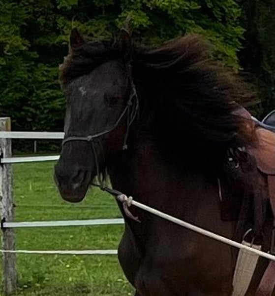Dreamy beautiful and expressive Lusitano gelding. At just 5 years old, he is already a powerhouse and knows how to impress. Compact, agile, and strong from the hindquarters, he shows that there is a lot of potential present. Confident and rather stallion-like, he manages well on his own; he wants his position to be accepted and appreciated, but responds well to consistent and clear leadership. He is currently being started in all three gaits and astonishes under saddle with his careful and delicate manner. He enjoys going for walks in nature, working from the ground, loading, and has already completed jump training very well and willingly, showing that he loves movement and variety. Maron belongs in experienced and gentle hands with ambitions; he is not a horse for beginners or purely recreational riders. He is also not suitable for outdoor stable housing; he definitely needs an outdoor box and plenty of turnout.