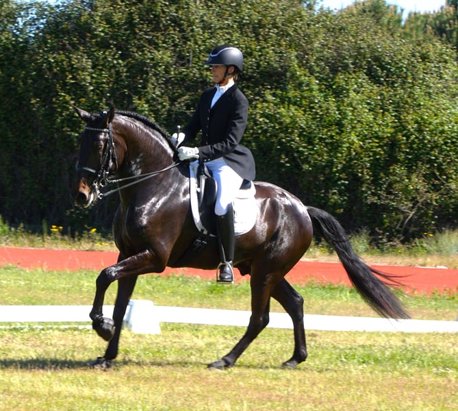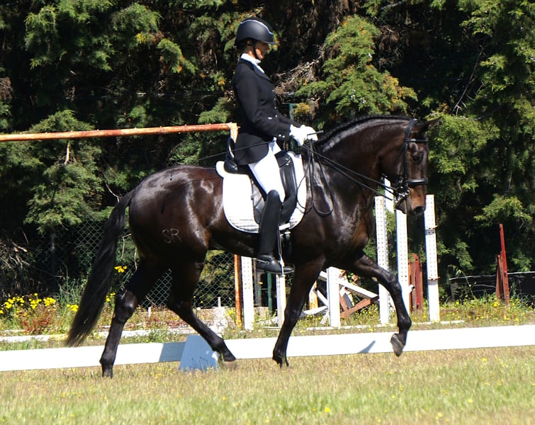 Ravel SR ist ein gross werdender sehr vielversprechender ausdrucksvoller zutraulicher Lusitanowallach Die guten Bewegunge seiner Eltern versprechen auf ihn abgefaerbt zu haben. Lisboa ist ein Schwester zum Koerungssieger Homero. Der Vater geht erfolgreich Dressurprufungen und zu dem unglaublichen Grossvater Embuçado brauch man ja nichts mehr zu sagen . Er wird ein grosser Hengst werden, ca 1.68m . Mutter 1,67 m und Vater 1.69m .Volle APSl papiere Er wurde heute durchgeroengt und fuer gut befunden !!!hurrah Piro negativ getestet!!!! So, jetzt hat Rvel sein erstes Turnier gemeistert: Dressurpruefung gewonnen und Campeonato iberico in seiner Klasse auch gewonnen. Was will man mehr? Absolut verladesicher.ist er auch. Preisreduzierung aus persoehnlichen Gruenden