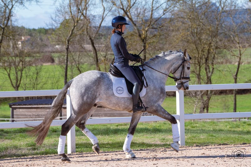 Verkaufe eleganten Lusitano-Wallach – Ein Traum für Dressurreiter! Zum Verkauf steht ein wunderschöner Apfelschimmel-Lusitano, geboren im Jahr 2021. Mit einem Stockmaß von 165 cm vereint er kraftvolle Präsenz und anmutige Erscheinung. Dieser junge Wallach ist ideal für Dressurbegeisterte, die Wert auf Talent, Bewegungsqualität und Lernbereitschaft legen. Sein freundliches Wesen und seine hervorragende Ausbildung machen ihn zu einem zuverlässigen Partner im Dressurviereck. Der Lusitano überzeugt durch seine elegante Erscheinung und sein ausgeglichenes Temperament. Bei Interesse freuen wir uns auf Ihre Kontaktaufnahme, um weitere Details zu besprechen und einen Besichtigungstermin zu vereinbaren.