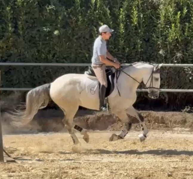 ✨RIVOLI DE SENA✨ Junger Lusitano mit Grand Prix Anlagen und Top-Abstammung, beherrscht bereits Fliegende Wechsel, Piaffe, Versammlung ein außergewöhnliches Talent RIVOLI DE SENA Merkmale: - Rasse: Lusitano - Geschlecht: Wallach - Geburtsjahr: 2021 - Farbe: Schimmel - Stockmaß: 1,65 m ⸻ Mit RIVOLI DE SENA steht ein beeindruckender Lusitano-Wallach zum Verkauf, der bereits in jungen Jahren durch seine hohe Versammlungsfähigkeit, Rittigkeit und außergewöhnliche Lernbereitschaft überzeugt. Ein Pferd mit echtem Sportpotenzial, das bereits jetzt Lektionen zeigt, die weit über seinem Alter liegen – dabei jedoch stets klar im Kopf und angenehm zu reiten bleibt. ⸻ 🧬 Hochwertige Abstammung: ✨ Vater: HOSTIL DE SENA • gekört mit 70,5 Punkten • abstammend von HOSTIL (76 Punkte) • bekannt für Qualität, Ausdruck und Versammlungsfähigkeit ✨ Mutter: ESPRELA DE SENA • gekört mit 70,5 Punkten ➡️ Eine hochinteressante Verpaarung, die Sportlichkeit, Rittigkeit und Talent für höhere Lektionen vereint. ⸻ 🎓 Ausbildungsstand: RIVOLI DE SENA ist für sein Alter bereits serh weit gefördert und zeigt: • fliegende Galoppwechsel • erste Ansätze in der Piaffe • sehr gute Versammlungsfähigkeit • Pirouetten • insgesamt hohe Arbeitsbereitschaft und Talent Alles wird dabei altersgerecht und korrekt aufgebaut, ohne ihn zu überfordern. Er kennt zudem: • Reiten auf dem Außenplatz • verschiedene Umgebungen • Working Equitation Hindernisse ➡️ Ein Pferd mit außergewöhnlicher Lernkurve und großem Entwicklungspotenzial. ⸻ 🐎 Typ & Bewegung: • moderner, harmonischer Lusitano-Typ • kraftvolle Hinterhand • gute Balance und Tragkraft • ausdrucksstarke Bewegungen ➡️ Ein Pferd mit echten Anlagen für höhere Dressurlektionen. ⸻ 🧠 Charakter: • klar im Kopf • motiviert und arbeitswillig • angenehm zu reiten • kooperativ und lernbereit ➡️ Trotz seines Talents bleibt er ehrlich und gut händelbar. ⸻ 🩺 Gesundheit: • Röntgenbilder vorhanden – ohne Befund ⸻ 🎯 Für wen ist RIVOLI DE SENA geeignet? • ambitionierte Dressurreiter • Working Equitation Reiter • Reiter mit Blick auf höhere Klassen • Menschen, die ein Pferd mit echtem Potenzial suchen ⸻ ⭐ Fazit: RIVOLI DE SENA überzeugt durch: ✔ sehr weit geförderte Ausbildung für sein Alter ✔ Talent für Piaffe, Wechsel & Versammlung ✔ hochwertige Abstammung ✔ klare Rittigkeit ✔ vielseitige Einsetzbarkeit ➡️ Ein junger Lusitano mit echten Grand-Prix-Anlagen und großem Zukunftspotenzial. ⸻ 📞 Kontakt & Besichtigung RIVOLI DE SENA kann nach Vereinbarung besichtigt und probegeritten werden. Ich freue mich auf ernsthafte Anfragen und nehme mir gerne Zeit für ein persönliches Gespräch.