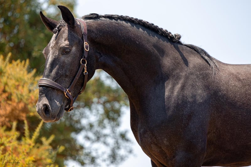 Charming stallion with great movements We are offering an impressive Lusitano stallion from the 2020 vintage for sale. This beautiful gray stallion not only impresses with his noble appearance, but also with his talent and versatility in dressage. Characteristics: Breed: Lusitano Gender: Stallion Year of birth: 2020 Color: grey Height: 162cm This stallion already shows great potential in dressage and has all the prerequisites to be successful in this discipline. His even temperament and willingness to learn make him an ideal partner for ambitious riders. If you are looking for a talented horse with a strong character that can shine both in training and at competitions, then this Lusitano is the perfect choice. He is very well-behaved and is also a real treasure to handle. Flawless x-rays are available. I can send you more pictures and videos if you are interested.