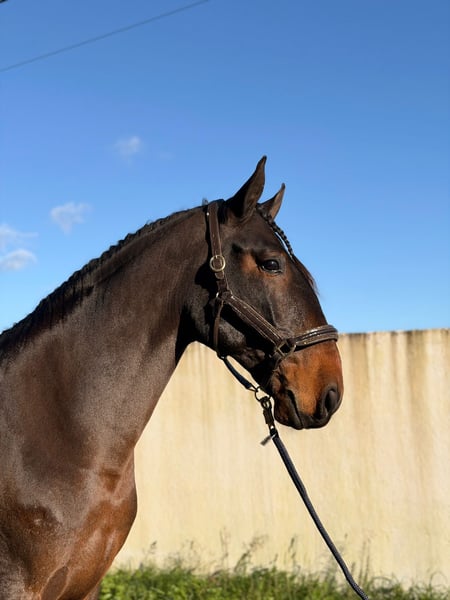 Large-Scale Lusitano – Size, Character & Quality Combined QRATOS🌟 Breed: Lusitano Gender: Gelding Year of Birth: 2020 Color: Dark Brown (Bay) Height: 16.1 hh ⸻ QRATOS is an exceptional Lusitano that immediately stands out due to his rare XXL size, elegance, and outstanding temperament. A horse for riders seeking something special – tall, expressive, well-trained, and very pleasant to handle. ⸻ 🏇 Training & Riding Characteristics ✔️ Under saddle for about a year ✔️ Confidently ridden in walk, trot, and canter ✔️ Very comfortable and sensitive to ride ✔️ Not hot, well-regulated ✔️ Calm and reliable in the field / outside the riding arena ✔️ Honest, balanced, and easy to handle on a daily basis ➡️ Consciously developed age-appropriate, allowing him time to grow – a vital foundation for health and longevity. ⸻ ✨ Special Feature: Lusitano XXL QRATOS is: 🐎 Exceptionally tall for a Lusitano 🌟 Harmoniously and correctly built 🤎 A very beautiful, noble specimen 🧠 With a lovable, clear temperament ➡️ The combination of size, type, and character is extremely rare on the Lusitano market. ⸻ 🎯 Potential Uses 🔹 Dressage – solid basic education with great development potential 🔹 Leisure & Trail Riding – safe, relaxed, and dependable 🔹 Ideal horse for riders seeking substance, comfort, and quality ➡️ Also a perfect luxury partner for ambitious leisure riders. ⸻ 🧬 Pedigree ✨ Sire: JOKER • Licensed with 72 points • Proven stallion with quality, expression, and rideability ✨ Dam: IDRICA • Very good mare • Known for passing on a friendly, balanced temperament ⸻ 🩺 Health Status ✔️ Piro-free ✔️ Current X-rays with no findings ✔️ Correctly built and consciously worked with gentle handling ➡️ A young Lusitano in excellent health – a secure investment in the future. ⸻ 💎 Character & Riding Feel QRATOS impresses with: 🤍 Calm, honest nature 🧠 Clear-headedness 🔥 Motivation without nervousness ➡️ A horse that inspires confidence and makes his rider feel very good from the very first moment. ⸻ 🌟 Summary QRATOS is a true exceptional Lusitano: ✅ XXL size (16.1 hh) ✅ Outstanding character ✅ Solid basic training ✅ Versatile in use ✅ Rare combination of size & type ⸻ 📞 Contact & Viewing QRATOS can be viewed and tried in riding. by appointment. I look forward to serious inquiries and am happy to take the time for a personal conversation.