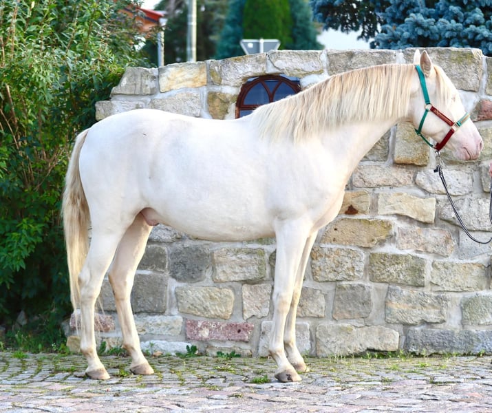 Verkaufe wunderschönen Lusitanosx PRE Wallach – ein echtes Highlight für jeden Pferdeliebhaber! Dieser elegante Lusitanos, geboren im Jahr 2020, besticht durch sein beeindruckendes Erscheinungsbild und seine ausgeprägte Charakterstärke. Mit seinem Cremello Farbe und seinen blauen Augen und einer Stockhöhe von 165 cm vereint er Schönheit und Eleganz in perfekter Harmonie. Der Wallach ist bestens für den Bereich Working Equitation geeignet und zeigt viel Talent sowie Lernbereitschaft. Seine vielseitigen Fähigkeiten machen ihn zu einem idealen Partner für ambitionierte Reiter, die Wert auf Vielseitigkeit und Qualität legen.Er wurde von uns Anfang des Jahres schonend klassisch angeritten und geht auch sicher ins Gelände. Der Lusitanos ist gesund ,Röntgenbilder ohne Befund liegen aus 24 vor und verfügt über einen angenehmen Charakter. Er freut sich auf eine neue Familie, die seine Stärken zu schätzen weiß und gemeinsam mit ihm neue Abenteuer erlebt. Bei Interesse oder für weitere Informationen stehe ich Ihnen gerne zur Verfügung. Vereinbaren Sie einen Termin für eine Besichtigung und überzeugen Sie sich selbst von diesem besonderen Pferd!