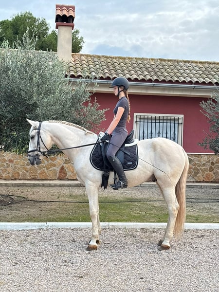 LUSITANO-HENGST Kastriert Alter: 6 Jahre Reisepass vorhanden Größe: 1,57 m Farbe: Perlino Gangarten: Schritt, Trab, Galopp, Seitengänge, Rücken nach innen, Mauerarbeit, Unterstützung, eingeritten in spanischem Schritt und Piaffe Sehr edel Romerías Röntgenbilder in Ordnung Piro negativ Mazarrón Weitere Infos per Privatnachricht
