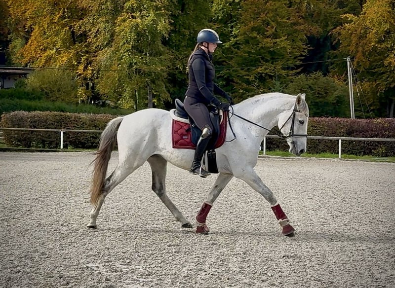Name: Mistral D´Carreiras Breed: Lusitano Gender: Gelding Date of Birth: April 6, 2016 Age: 9 years Height: 15.5 hh Color: Grey (Dappled Grey) Pedigree: Available upon request Temperament: People-oriented, curious, intelligent, brave, affectionate Training/Suitability: ridden, leisure riding, dressage, jumping, Working Equitation Trail Experience: Reliable, confident, comfortable alone and in a group Health: Dewormed, vaccinated, barefoot, eczema-free, teeth checked Stabling: Open stable Special Features: Very seat-friendly, shoe and loading confident The properties listed are based on our personal assessment and do not constitute guaranteed traits. Price: €7,900 (gross) Have we sparked your interest? To give you a better impression of Mistral, we are happy to send you a riding video. Of course, we are available for a detailed description of the horse, personal consultation, and to answer all your questions by phone. Please feel free to contact us anytime via WhatsApp or call us at: +49 151 19487595 Our phone hours are daily from 7:00 AM to 1:30 PM and from 8:00 PM onwards. We look forward to hearing from you! A clinical or radiological pre-purchase examination can be performed by your veterinarian of choice. Mistral can be safely and comfortably delivered to his new home. We take care of all preparations and transportation so that your new horse arrives stress-free, well cared for, insured, and in good health. Currently, we offer a carefully selected range of sale horses. With us, you are sure to find your dream horse. Feel free to visit our website at: www.marvinsroyalhorses.de Dear customers, we are happy to introduce our horses and offer grooming, tacking, lunging, ground work, and trial riding in the riding hall, on the arena, or in the field, so you can get to know your new family member better. This costs €40 per horse, and €30 for each additional horse, which will be refunded upon purchase. Our address: Ferdinand Grube 50 53577 Neustadt-Wied Google Maps: marvinsroyalhorses