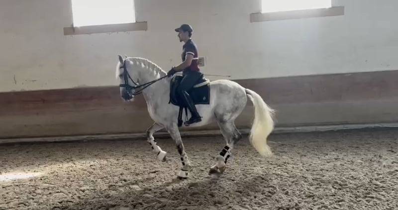 🌟 NATIVO – Lusitano & Exceptionally Safe Schoolmaster 🌟 Highly trained gelding suitable for beginners, amateurs, and re-entrants NATIVO Features: - Breed: Lusitano - Gender: Gelding - Year of Birth: 2017 - Color: Grey (Dappled) - Height: 16.1 hh NATIVO is an exceptionally high-quality Lusitano, impressing with his advanced training, absolute reliability, and calm, clear temperament. A true exceptional horse that combines safety and top-level quality. ✨ Training & Skills: ✔️ Piaffe ✔️ Flying changes ✔️ Traversals ✔️ Pirouettes ✔️ Confident in all movements 🐎 Working Equitation: ✔️ Familiar with Working Equitation obstacles ✔️ Calm, thoughtful, and composed ✔️ Equally reliable and clear-headed here as well 🧠 Temperament & Rideability: ✔️ Extremely well-behaved – even with beginners ✔️ Very easy, comfortable, and safe to ride ✔️ Rock-solid, nerves of steel, and always controllable ✔️ Demonstrated calm, focused, and confident demeanor even at Golegã ✔️ Ideal for beginners, amateurs, re-entrants, or switchers, but also suitable for the ambitious rider 🩺 Health: ✔️ No melanomas NATIVO is a true teacher, inspiring trust and providing safety for his rider – regardless of experience level. He is perfect for riders seeking a well-trained, honest, and uncomplicated horse that brings daily joy. An absolute gentleman, versatile, with a big heart and excellent attitude. 📞 Contact & Viewing NATIVO can be visited by appointment. I look forward to serious inquiries and am happy to take the time for a personal conversation.