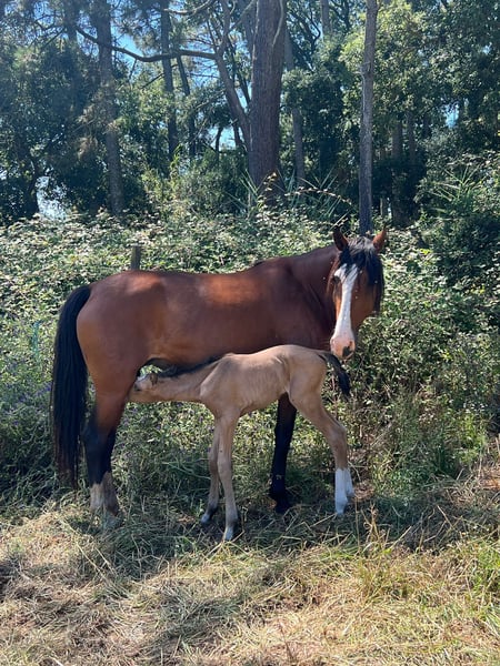 ✨ Lusitano Broodmare – in foal to LOTUS DE SENA | guaranteed Buckskin | APSL 69.5 points | 15.3 hh (produces large foals) MORENA Features: - Breed: Lusitano - Gender: Mare - Year of Birth: 2016 - Color: Bay - Height: 15.3 hh (produces large foals) 🏅 Registered with APSL – 69.5 points 🤰 In foal to LOTUS DE SENA – guaranteed Buckskin ⸻ MORENA is a charming, refined, and very well-bred Lusitano broodmare, distinguished by her excellent breeding performance, friendly nature, and large-framed offspring. Despite her height of 15.3 hh, she consistently produces impressively large, modern foals – a significant advantage for breeders. She is approved as a broodmare with 69.5 points by the APSL and has already foaled three foals. At age 6, MORENA was lightly backed (walk, trot, canter a few times), then returned to breeding, and is very easy and pleasant to handle. ⸻ 🤰 Currently in foal to LOTUS DE SENA – guaranteed Buckskin! MORENA is currently pregnant by LOTUS DE SENA, a striking, modern Lusitano stallion. ➡️ 100% color certainty: the foal will be Buckskin. 📅 Expected foaling date: June 1, 2026 Special note: She has already foaled two foals by LOTUS DE SENA – both Buckskin, both with extensive white markings, large, and of modern type. Photos from the pairing are available and serve as an impressive example of her inheritance. ⸻ 📸 Photos of a previous foal are available in the listing ✔ Large-framed ✔ Very correct conformation ✔ Modern appearance ✔ Striking color with white markings ⸻ 💛 Character & Handling - Friendly & open - Easy to handle - Social in herd - Calm, pleasant temperament - Reliable broodmare ⸻ 🎯 Potential Uses - High-quality, colorful broodmare - Ideal for modern Lusitano lines - Re-initiating riding horse training is generally possible 📞 Contact & Viewing MORENA can be visited by appointment. I look forward to serious inquiries and am happy to take the time for a personal conversation.