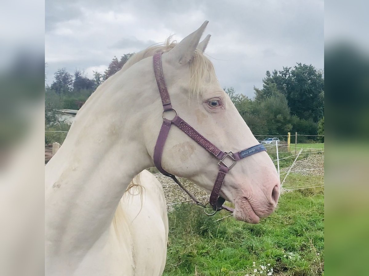 Ausdrucksstarke gekörte PSL (Lusitano) Zuchtstute. In Perlino farbener Jacke und mit 1,63 m ist sie sehr ausdrucksstark und wirkt wie ein Fabelwesen/Einhorn. 🦄 Ein Garant für Sonderfarbene aufgehellte Fohlen, (Palomino, Falbe, usw…) 2011 in Portugal geboren, seit 2016 hier in Deutschland, sehr robust und ohne Ekzem. Ausbildungszustand roh, bisher nur Zuchtstute. Hat 3 von 4 Fohlen hier in Deutschland in der Herde geboren, und wurde im Natursprung gedeckt. Absolut herdenverträglich und sehr sozial. Sie ist eine liebevolle Mutterstute und hat bisher immer allein und komplikationslos abgefohlt. Im Umgang mit dem Menschen ist sie anfangs skeptisch, aber nie böse. Nachzucht kann vor Ort angeschaut werden. All ihre Fohlen haben eine sehr offene dem Menschen zugewandte Art, neugierig, verspielt und immer aufmerksam. Ihren Körperbau und extrem kräftigen Rücken, gepaart mit toller Bewegung und enormer Hinterhand vererbt sie genau so an ihre Fohlen. Diese sind alle sehr gute Reitpferde, sowohl für den Dressur o. Worker Sport und/oder Freizeitbereich, als auch für die Zucht sehr interessant. Ihre gekörte Falbfarbene Mutter, wie auch ihr Vater der bekannte Falbhengst Check-Mate sind sehr groß und Ausdrucksstark. Linien: Ribeiro Telles, Veiga, Palha, Coimbra, Irmaos, Ortigáo Costa Hengste in der Abstammung: Ohio 73,5P., Dardo 72,5P., Habitual 72P., Dital 70,5P., Zelador 80P., Raio 77P., Damasco 76P., Mexico 74,5P., Habil 73,5P., Zagalo 75P. ect... Aus gesundheitlichen Gründen können wir die Zucht leider nicht fortsetzen und reduzieren unseren Bestand.