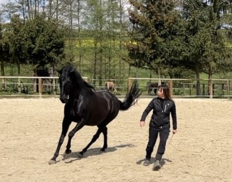 Lusitano Rappstute – in liebevolle Hände abzugeben Wir suchen für unsere wunderschöne Lusitano-Stute (Rappstute, ohne Abzeichen, mit Papieren) ein passendes Zuhause. Sie wird nur schweren Herzens abgegeben, da wir ihr aufgrund der Haltungsbedingungen am eigenen Hof (ganzjährige Weidehaltung in der Gruppe) nicht gerecht werden können. Die Stute benötigt eingeschränkte Weidezeiten, sowie Heu bester Qualität oder besser noch Heulage oder bedampftes/ gewässertes Heu. Unter diesen Bedingungen ist sie topfit und kerngesund. Wird darauf nicht geachtet, reagiert sie empfindlich (Heustauballergie/ EMS). Offenstallhaltung mit angepasstem Fütterungsmanagement ist daher Voraussetzung. Charakter & Ausbildung: • Sehr sensibel und superfein an den Hilfen → kein Anfängerpferd • Liebt Bodenarbeit und Dressurarbeit auf dem Platz • Beherrscht alle Seitengänge, usw. und zeigt sich dabei motiviert und lernfreudig Wir wünschen uns für sie: Einen Platz bei erfahrenen, einfühlsamen Pferdemenschen, als Zuchtstute oder Beitstellpferd, der/ die mit ihrer Sensibilität umgehen können und ihr die notwendige Haltung und Zuwendung bieten können. Abgabe nur in wirklich geeignete Hände und in bestes Zuhause.