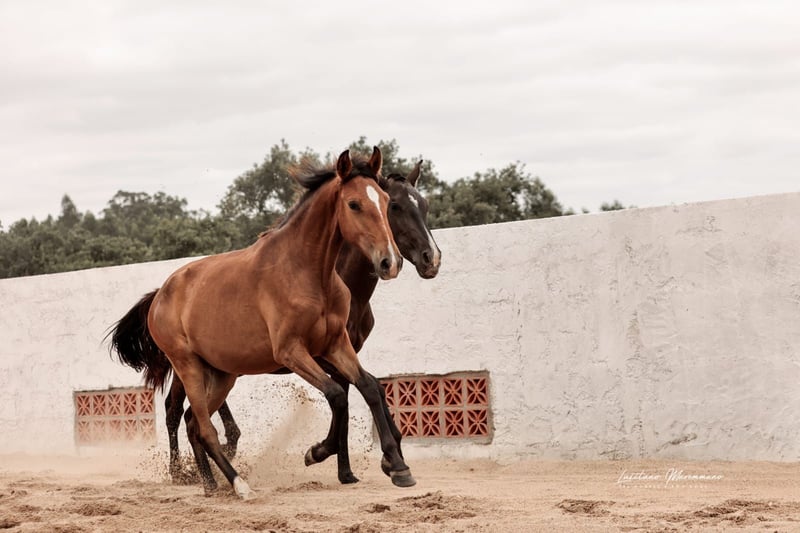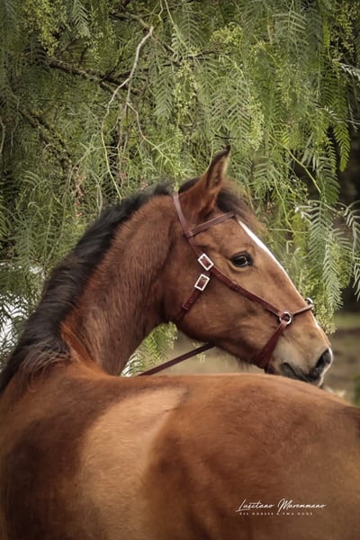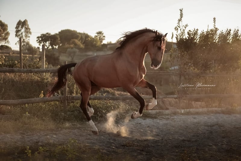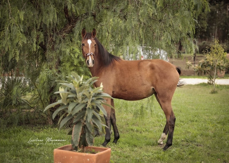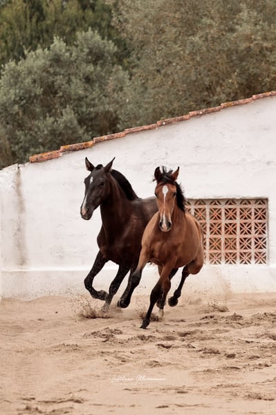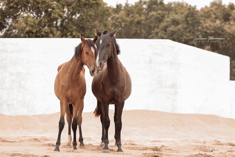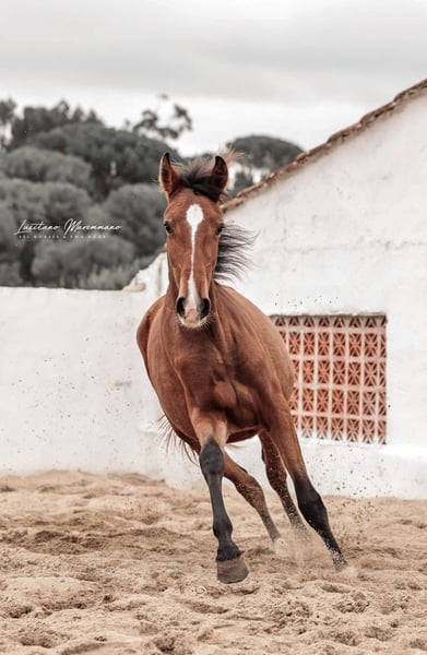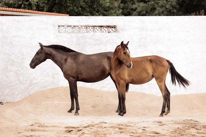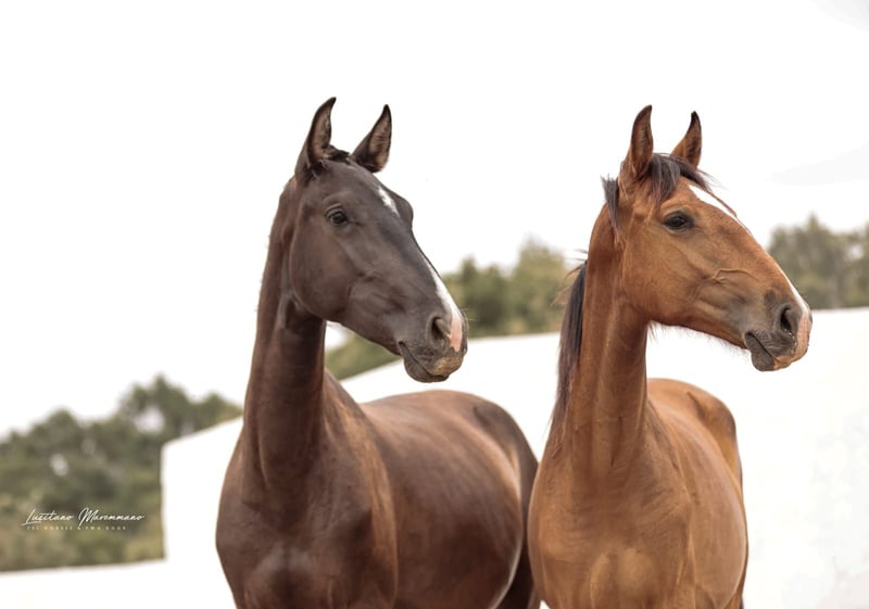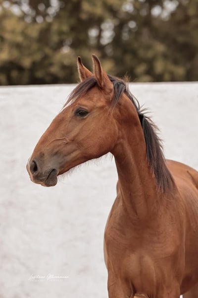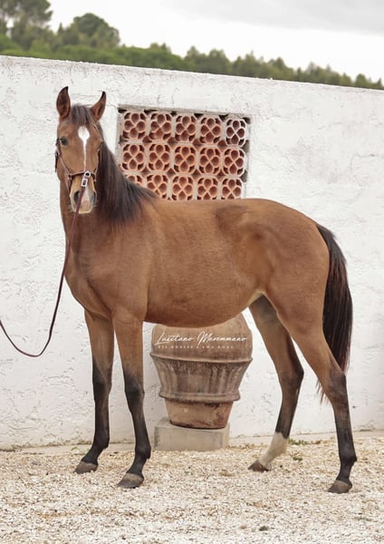 Charming Lusitano mare with a big heart Characteristics: - Breed: Lusitano - Gender: Mare - Year of birth: 2024 - Color: bay - Height: Final height estimated 158cm, the mother is 154cm and the father 164cm This young mare is not only a real eye-catcher, but will certainly be an ideal partner for relaxed rides and leisure activities. We could also imagine this relaxed young mare in dressage or working equitation. She is also interesting for breeding, as both dam and sire were licensed with 70 points. With her friendly and trusting nature, she will quickly win the heart of her new owner. She demands to be stroked every day and enjoys it very much. Ulia is very well behaved, knows the hoof trimmer, is halter trained and can be loaded perfectly. On the last two pictures you can see her father Octal again. At the moment Ulia is growing up in a wonderful rearing facility, where she can grow in peace and is provided with the best food. She is extremely compatible with other mares. I can send you more pictures and videos if you are interested.