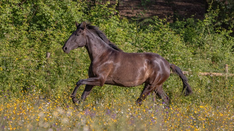 Sinfonia is een prachtige zwarte merrie die haar jeugd in een kudde in vrijheid op ons stamboek (www.coudelaria-linda-oliveira.com) heeft doorgebracht, nu drieënhalf jaar oud is en voorzichtig is bereden. In de zomer glanst haar vacht chocoladebruin en in de winter is ze een zwarte. Haar eerste stappen onder het zadel toont ze met een voorbeeldige rijdigheid en bereidheid tot samenwerking. Ze beschikt over drie goede basisgangen, een harmonisch exterieur en het spreekwoordelijke "heldere hoofd" van een Lusitano. Ze zal haar mens in de toekomst veel vreugde brengen en een geweldige partner zijn. Dit is een kans om al in deze vroege fase je droompaard te vinden en veilig te stellen. Ze kan graag nog bij ons blijven voor verdere opleiding en we bieden ook de mogelijkheid voor de ruiter om in ons comfortabele gastenhuis te verblijven en dagelijks met zijn paard te groeien onder zeer goede lessen. Ze zou ook interessant kunnen zijn voor de fokkerij, aangezien ze zeer goede bloedlijnen van de fokkerij Ortigao Costa in haar pedigree heeft en de zeldzame zwarte kleur bij Lusitanos kan doorgeven. Meer details en informatie graag via WhatsApp +49 17644482124.