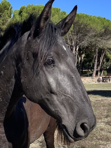 Serenata è una giovane puledra barocca di sangue Rappe, con una piccola macchia bianca sulla fronte che ricorda una fiocco di neve. La sua struttura elegante e armoniosa mette in ombra molti stalloni. È nata presso il nostro allevamento (www.coudelaria-linda-oliveira.com) e ha trascorso la sua infanzia e giovinezza in branco, imparando a conoscere e apprezzare quotidianamente il contatto con le persone. Per questo motivo, è una giovane damigella molto affettuosa e socievole, che si trova all'inizio della sua carriera di cavalla da dressage. A tre anni e mezzo, è stata messa in sella, lungi, lavorata al terreno e da poco è stata delicatamente iniziata alla monta. Ci entusiasma il suo desiderio di apprendere e la sua disponibilità alla collaborazione. È un vero e proprio diamante destinato a brillare, con un’energia straordinaria e un carattere che farà di lei una compagna fedele per il suo cavaliere. Naturalmente, ha ancora bisogno di tempo per completare la formazione e può quindi rimanere con noi per l’addestramento di base. Questa splendida puledra nera come il jet, di sangue Lusitano, rappresenta un’opportunità unica, poiché non ci sono molti esemplari paragonabili. Il suo pedigree è interessante anche per la riproduzione, e può trasmettere la pregiata e rara colorazione nera, molto apprezzata tra i Lusitani. Suo padre, Lidador OC, è un stallone di 10 anni, di successo nel Grand Prix, di sangue Rappe. La madre proviene da antiche linee di sangue di tori da corrida. Serenata possiede sicuramente il coraggio e la capacità di raccolta necessari per l’Equitazione di Lavoro. È stata presentata con successo come puledra di due anni al festival delle puledre giovani a Cascais. Per ulteriori video e informazioni, non esitate a contattarci su WhatsApp al +49 176 44482124.