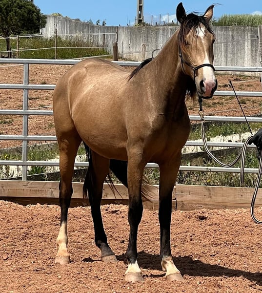 **For sale: Beautiful Lusitano mare** For sale is an impressive Lusitano mare, born in 2022. This young lady impresses with her noble appearance as a dun and convinces with a finished height of 160 cm. Her elegant movement and friendly nature make her an ideal partner for ambitious riders. She is very friendly and great for breeding. If you are looking for a talented and beautiful horse that is a pleasure to ride both in sport and on a daily basis, then this Lusitano mare is just right for you. She will grow up in a herd, www.cavalofeliz.com, in large paddocks. She is Piro-negative. If you are interested and would like further information, please do not hesitate to contact us.