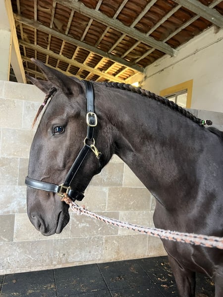 Typy mare with excellent character We offer an exceptional Lusitano mare for sale. Features: - Breed: Lusitano - Gender: Mare - Year of Birth: 2022 - Color: Black - Height: 161 cm, there will definitely be a few more centimeters This talented mare impresses with her elegant appearance and her balanced, loving nature. She has already gained initial experience on the lunge and shows promising potential for dressage. SAFIRA combines two of the most renowned bloodlines of the Lusitanos - the noble LA PERLA line and the powerful ORTIGÃO COSTA line. A combination that promises elegance, rideability, and charisma at the highest level. Currently, she is being continuously trained and always demonstrates a willingness to learn, cooperativeness, and readiness to perform. With her honest, people-oriented nature, SAFIRA is also suitable for ambitious leisure riders and sensitive beginners who desire a reliable and loving horse, despite her potential. The price will develop according to her training. Flawless X-ray images are available. I can gladly provide additional pictures and videos upon request.
