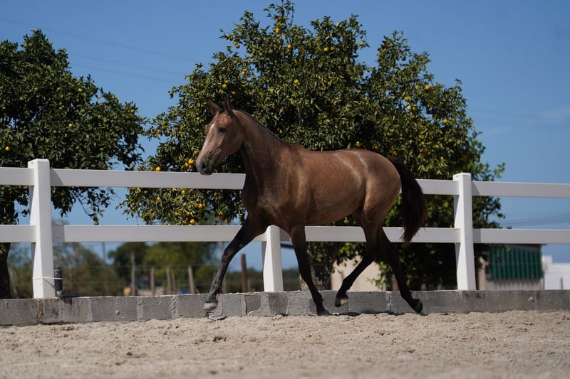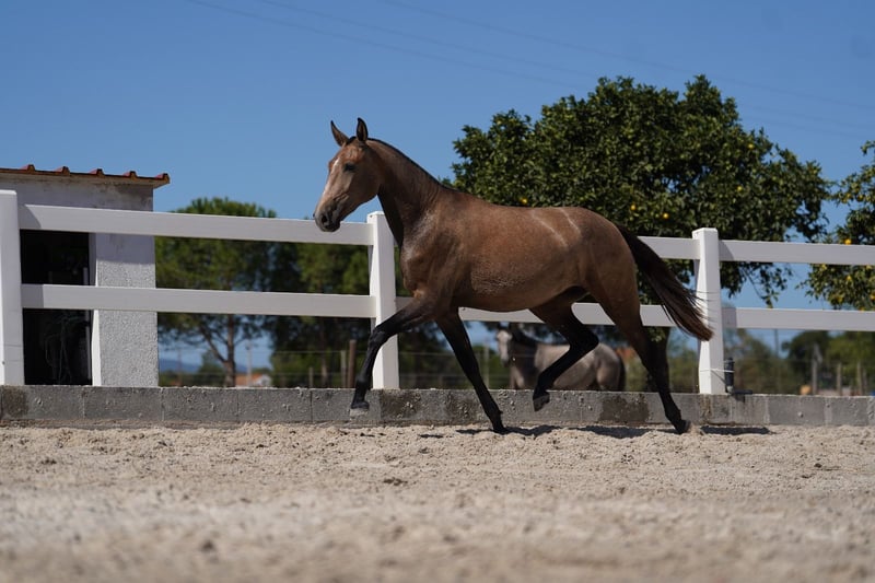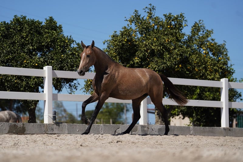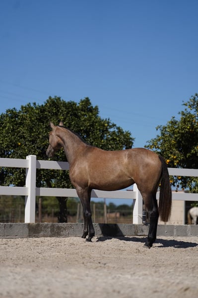 Eine sehr schöne junge Stute mit einem sehr seltenen Stammbaum (das war der Grund, warum wir sie gezüchtet haben). Sie ist super elegant! Ein sehr aktives Hinterbein! Sehr geschmeidige Bewegungen! Sinfonia ist pirofrei!!