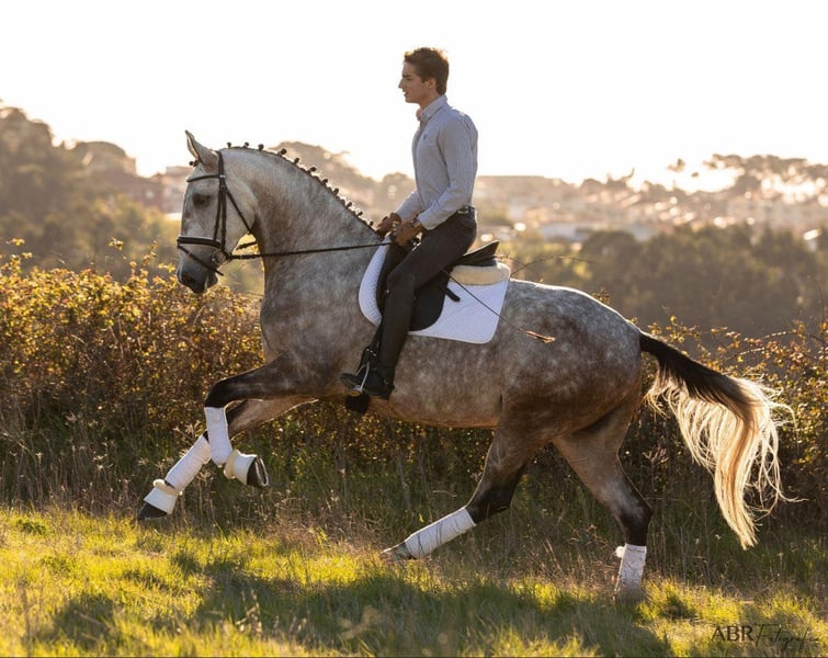 If uphill needs a picture… Spectacular 4yro piro free PSL mare from Equador MVL and approved with 71,5 points… She got an 8 for her walk. In the origins of this Lusitano mare you can find only big names. Her father is Equador MVL, out of Quo Vadis, who went to the olympic games. Her mother comes from Soberano, out of Hostil and we can also find here Riopele in the lines of her mother. 5 stallions with 4 or 5 stars recommendations. This is the pure essence of dressage blood and functionality. This young lady is a promise for the future. She is has actually 166cm. She moves spectacular, very good gaits and an amazing conformation. There are not many mares like this in the market. She is really a treasure. For dressage or breeding. Well basic ridden in all 3 gaits and here she shows her real qualities. Not becoming tired, super cooperative and fast learning with a lot of strength. Located in Portugal 🇵🇹
