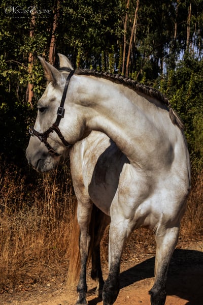 Su paso ancho y muy natural, su trot activo y su galope extremadamente armonioso y ascendente ya destacan desde potra, bailando junto a su madre. Actualmente se encuentra en el nivel de entrenamiento fundamental según el programa de Vale de Água (https://www.quintavaledeagua.com/index.php/va-lusitanos/breeding-development). Su respuesta calmada y segura a las ayudas de las piernas y el peso en la silla es una de sus mayores fortalezas. Su conformación naturalmente ascendente la convierte sin duda en una excelente compañera para la doma o la equitación de trabajo. Sobre VA Lusitanos: Criamos nuestros caballos con cuidado; los potros nacen en el campo, crecen en manada en terrenos ondulados, con árboles, arbustos, zonas abiertas, ríos y un pequeño lago, lo que les permite familiarizarse y confiar en diferentes tipos de entorno. Siempre disponen de heno de buena calidad y su ración de granos y minerales. Aprenden comportamientos sociales positivos de sus madres, tías y de la manada, además de la interacción social con otros caballos y la interacción diaria con humanos, que es una parte fundamental de su educación. Gracias a la interacción frecuente con nuestros caballos, desarrollan una profunda confianza en las personas, lo que facilita todas sus interacciones tanto con humanos como con otros caballos. Nuestros clientes confirman una y otra vez que nuestros Lusitanos destacan por su confianza, tranquilidad y facilidad de manejo en cualquier situación. Creemos que el caballo lusitano necesita tiempo para madurar y desarrollar su estructura ósea y muscular, por lo que evaluamos a cada VA Lusitano a partir de los 4 años de edad. Pipa VA comenzó su entrenamiento a los 5 años, primero en la cuerda y en mano, y desde hace un año también bajo la silla. Actualmente no está inscrita como yegua de cría, pero consideramos que podría ser una excelente madre y yegua reproductora. Disponemos de diferentes VA Lusitanos en distintas edades. Caballos jóvenes, entrenados en mano y bajo la silla. Puedes consultar una visión general de nuestros lusitanos en nuestra página web. Además, ofrecemos alojamientos de alta calidad para nuestros clientes. Cuando compras un caballo con nosotros, tu estancia en uno de nuestros lujosos alojamientos es gratuita (máximo 5 noches). https://www.quintavaledeagua.com