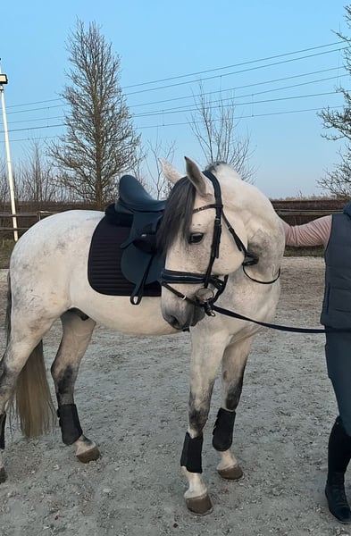 Te koop: 10-jarige lusitano hengst met interessante bloedlijn. Goed opgeleid in de dressuur. Vriendelijk en werkwillig karakter.
