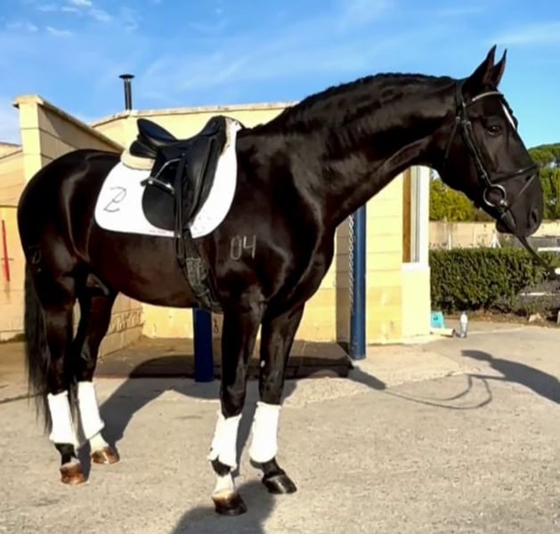 Cheval de dressage exceptionnel avec un caractère impeccable Nous avons le plaisir de vous présenter un cheval qui nous a vraiment impressionnés et que nous savons que vous allez adorer. Il allie merveilleusement l'élégance, la facilité et le talent pour le dressage. Ce cheval est parfaitement dressé, il exécute tous les mouvements latéraux avec fluidité et maîtrise les changements de pied en série. Son dressage avancé, allié à son tempérament calme et respectueux, en font un choix idéal pour un cavalier souhaitant progresser et performer sans difficulté. Approuvé pour la reproduction mais jamais utilisé comme étalon, il garde un comportement froid et concentré au travail. Sociable et facile à manipuler, il s'adapte à toutes les situations avec sérénité, que ce soit dans l'arène, en compétition ou à l'extérieur. Si vous êtes à la recherche d'un cheval fiable avec une excellente formation et un caractère exceptionnel, celui-ci mérite toute votre attention. Il représente une opportunité précieuse pour ceux qui veulent un partenaire aussi talentueux qu'amusant à monter. ✅ Excellentes radiographies disponibles ✅ Piro libre IberHorse.com : Notre mission est de mettre en relation des cavaliers avec des chevaux d'exception. Si ce cheval correspond à ce que vous recherchez, contactez-nous pour plus d'informations ou pour organiser une visite. Nous serons heureux de vous aider dans votre choix.