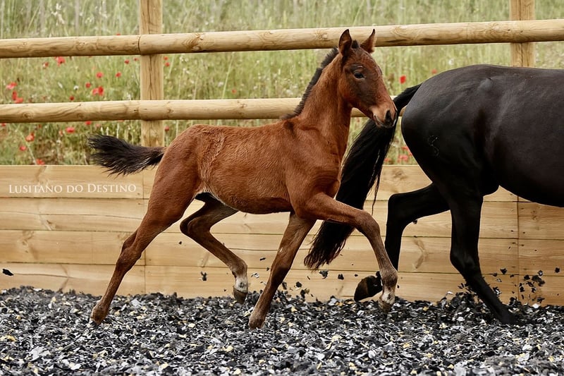 Palador is a foal with a lot of refinement and excellent movement. He is well-handled and ready to join his new family. His own sister is kept at the stud farm, with great potential. He is sired by a purebred Lusitano mare approved for breeding and by a Lusitano x KWPN stallion (CSO origins), who was awarded in the 4-year-old dressage class with 77% in the final test. A versatile future horse with the beautiful finesse characteristic of the Lusitano.