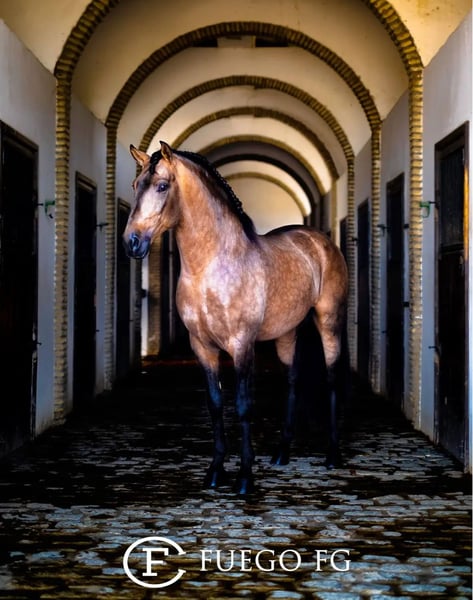 ⭐ Uncas – Außergewöhnlicher Lusitano-Junghengst in seltenem Buckskin mit Aalstrich | Elite-Abstammung & Show-Potenzial ⭐ Geboren am 01.04.2024 | Buckskin ohne Schimmelgen | ca. 161 cm erwartet Merkmale: - Rasse: Lusitano - Geschlecht: Hengst - Geburtsjahr: 2024 - Farbe: Buckskin - Stockmaß: 1,61 m (Endmaß geschätzt) Mit Uncas biete ich einen hochkarätigen, typvollen und genetisch wertvollen Lusitano-Junghengst aus absoluter Spitzenabstammung an. Seine seltene Buckskin-Farbe mit markantem Aalstrich und sein ausdrucksstarkes Gesicht mit unverwechselbarem Abzeichen machen ihn zu einem echten Hingucker. ⸻ 🔥 Exklusive Abstammung – Halbbruder des berühmten FUEGO FG Uncas ist ein genetisch hochinteressanter Youngster: • Vater: NAVALHEIRO (OPUS-72) – bekannt für Rittigkeit, Ausdruck und hervorragende Bewegungsqualität • Halbbruder zu FUEGO FG, einem international bekannten Lusitano aus herausragender Zucht • Kein Schimmelgen-Träger, ideal für farbstabile Zuchtlinien Diese Verpaarung ist selten und besonders wertvoll für Zucht und Sport. ⸻ ✨ Farbe, Typ & Präsenz Uncas besticht durch: • seine seltene Buckskin-Farbe mit deutlichem Aalstrich • ein einzigartiges Gesichtsabzeichen – absoluter Wiedererkennungswert • barocke, kompakte Linien • korrektes Fundament und harmonische Proportionen • menschenbezogenen, klaren und freundlichen Charakter Voraussichtliches Stockmaß: ca. 161 cm – ideal für Working Equitation, klassische Dressur und Show. ⸻ 🕊️ Bewegung & Potenzial Seine Bewegungen sind: • raumgreifend • leichtfüßig • elastisch • kraftvoll und taktrein Durch seine natürliche Versammlungsbereitschaft, seine Wendigkeit und sein exzellentes Gleichgewicht bringt er hervorragende Voraussetzungen mit für: • Working Equitation • Barock- & Freiheitsdressur • Showauftritte • klassische Dressur Er hat das gewisse „Etwas“, das auf dem Platz sofort auffällt. ⸻ 🐎 Gesundheit & Aufzucht Uncas wächst unter besten Bedingungen in Deutschland auf und erhält alles, was ein gesundes Jungpferd braucht: • artgerechte Junghengsthaltung • hochwertiges Raufutter & Mineralfutter • kennt Halfter & Hufschmied • vollständig geimpft • bisher nie krank Sein Handling ist vorbildlich für sein Alter – brav, neugierig und gelassen. ⸻ 💎 Warum Uncas? Weil er ein besonderer Junghengst mit Seltenheitswert ist: ✔ seltene Buckskin-Farbe mit Aalstrich ✔ exzellente Abstammung (Halbbruder von FUEGO FG) ✔ ausdrucksstarke Bewegungen ✔ barocker, kompakter Typ ✔ klarer Kopf & feines Wesen ✔ ideal für Show, Sport & Zucht ⸻ 📞 Kontakt & Besichtigung Uncas kann nach Vereinbarung besichtigt werden. Ich freue mich auf ernsthafte Anfragen und nehme mir gerne Zeit für ein persönliches Gespräch.