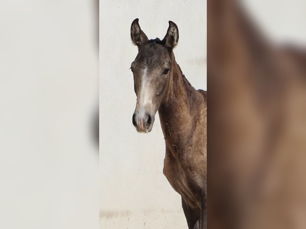 Expressive weanling with top pedigree Features: - Breed: Lusitano - Gender: Stallion - Year of Birth: 2025 - Color: Buckskin - Height: Estimated final height 164 cm Expressive weanling with top pedigree – directly from the breeder! This Lusitano stallion, born in April 2025, impresses with his rare dark buckskin color and his sweet, people-oriented character. He is already very trusting and clear-headed. His father is a multiple award-winning stallion – World and European Champion in Working Equitation – known for his exceptional rideability, strong nerves, and honest nature. He consistently passes these qualities on to his offspring. Although many of his lines are successful in bullfighting, his descendants stand out for their balanced character and uncomplicated nature in daily handling. The future height is expected to be around 1.64 m – ideal for riders looking for a sporty, sensitive horse with excellent potential. Currently, VARZIM is growing up in a beautiful campo, where he can grow peacefully and is provided with the best feed. In the herd, he shows himself to be very sociable with other horses. I can gladly provide more pictures and videos if interested.