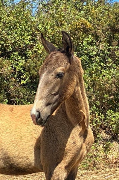Potente potro destet con excelente pedigree Características: - Raza: Lusitano - Sexo: Macho - Año de nacimiento: 2025 - Color: Buckskin - Altura: Altura final estimada 164 cm Potente potro destet con excelente pedigree – ¡directamente del criador! Este semental Lusitano, nacido en abril de 2025, impresiona con su rara y oscura coloración buckskin y su carácter amable y sociable. Ya se muestra muy confiado y claro de mente. Su padre es un semental galardonado en múltiples ocasiones – campeón mundial y europeo en Working Equitation – conocido por su excepcional capacidad de montar, fortaleza nerviosa y su carácter honesto. Estas cualidades las transmite de manera constante a su descendencia. Aunque muchas de sus líneas son exitosas en la tauromaquia, sus descendientes destacan por su carácter equilibrado y su forma sencilla de relacionarse en el día a día. La altura futura se estima en aproximadamente 1,64 m – ideal para jinetes que buscan un caballo deportivo y sensible con excelentes cualidades. Actualmente, VARZIM está creciendo en un hermoso campo, donde puede desarrollarse en paz y recibe la mejor alimentación. En la manada, se muestra extremadamente compatible con otros caballos. Puedo enviar más fotos y videos con gusto si hay interés.