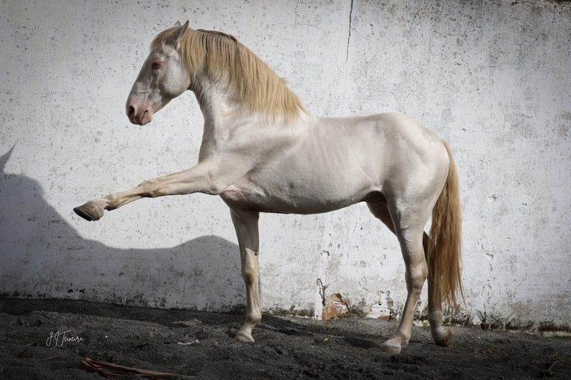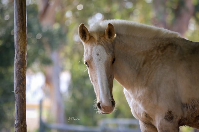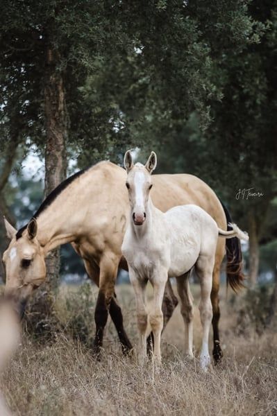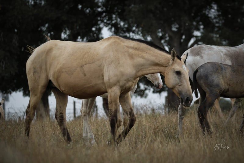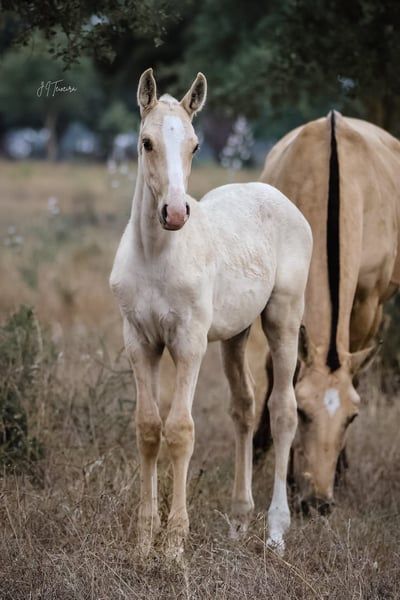 Outstanding stallion with a unique look Characteristics: - Breed: Lusitano - Sex: Stallion - Year of birth: 2024 - Color: Palomino - Height: Final height estimated 165 cm We are offering an impressive Lusitano stallion for sale that was born in 2024. This young Palomino not only impresses with his extraordinary beauty, but also with his potential as a show horse. This is also confirmed by his half-brother Fuego by Clémence Faivre. With a height of 165 cm, he presents an imposing appearance and promises a promising future in the show arena. His elegant appearance and friendly nature make him an ideal candidate for ambitious riders and breeders looking for a horse with exceptional potential. The stallion is already showing promising signs and is sure to turn heads at any event. His parents can be seen in the last pictures. I can send you more pictures and videos if you are interested.