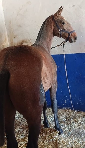 Potro PSL de este año 2025 mucha calidad en los tres aires y gran genetica. Cara acarnerada muy expresiva. Potro ideal para doma clásica, vaquera o equitación de trabajo.