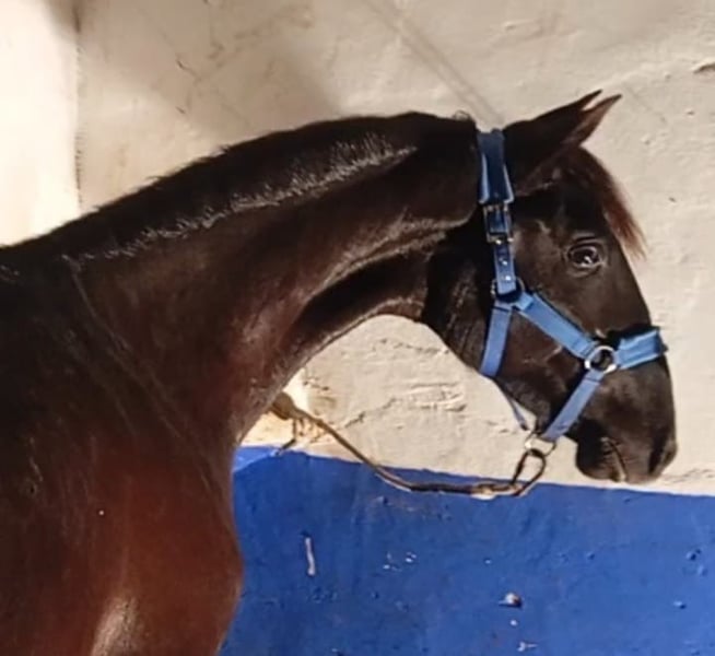Potro lusitano que cumplirá 2 años este 2026 movimientos espectaculares gran genética y carácter. Capa negra no tiene ni un pelo blanco espectacularmente guapo. Su padre que es también negro domado en gp con unos movimientos y actitudes espectaculares consultar se envían vídeos de su padre trabajando.
