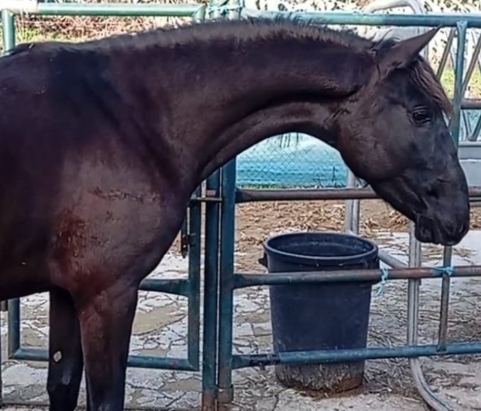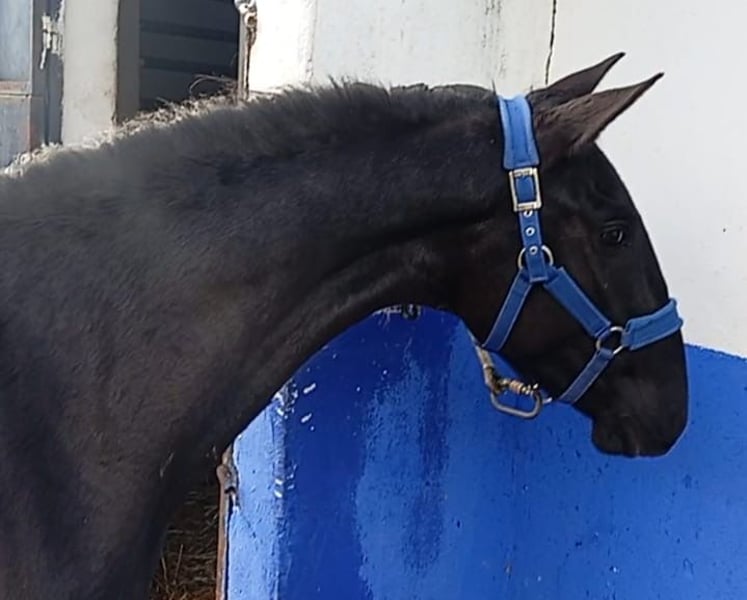 Lusitano foal, who will turn 2 years old in 2026. Spectacular movements, excellent genetics, and temperament. Black coat with no white hairs, incredibly handsome. His father, also black, is a trained dressage horse with remarkable movements and attitude. Videos of his father working can be provided upon request.