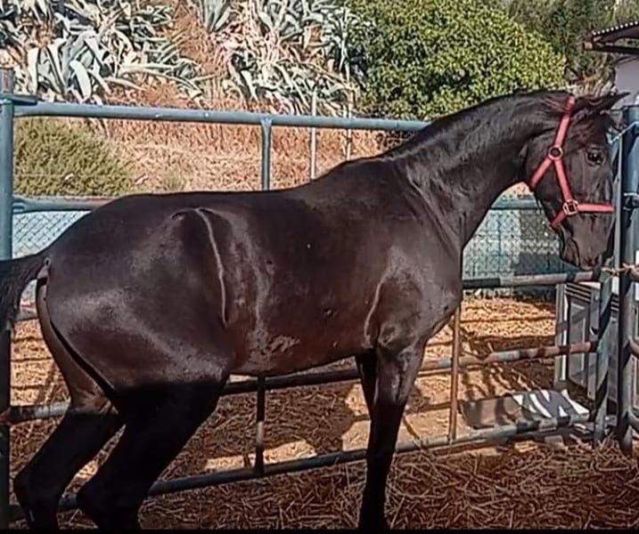 Lusitano colt turning 2 years old in 2026, with spectacular movements, excellent genetics, and a great temperament. Black coat with not a single white hair, truly stunning. His father, also black, is a trained dressage horse with remarkable movements and attitude. Videos of his father working can be provided upon request.