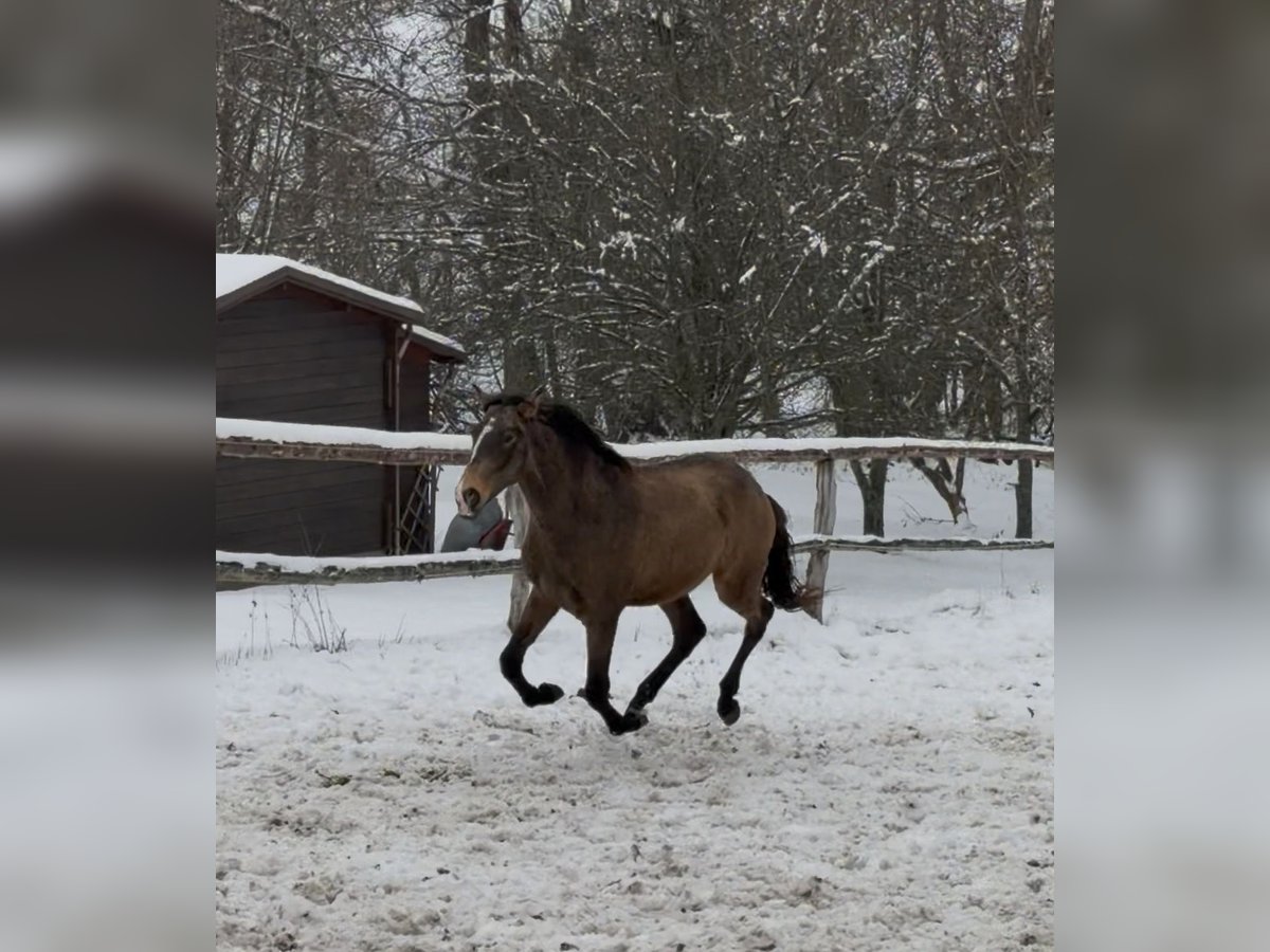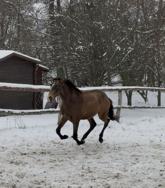 ⭐ Uncas – Exceptional Lusitano Foal in Rare Buckskin with Dorsal Stripe | Elite Lineage & Show Potential ⭐ Born on April 1, 2024 | Buckskin without Grey Gene | Approx. 16.1 hh expected Features: - Breed: Lusitano - Sex: Colt - Year of Birth: 2024 - Color: Buckskin - Height: 16.1 hh (estimated final height) With Uncas, I am offering a top-quality, typy, and genetically valuable Lusitano colt from outstanding lineage. His rare buckskin color with a prominent dorsal stripe and his expressive face with a distinctive marking make him a true eye-catcher. ⸻ 🔥 Exclusive Lineage – Half-brother of the renowned FUEGO FG Uncas is a genetically highly interesting young horse: • Sire: NAVALHEIRO (OPUS-72) – known for rideability, expression, and excellent movement quality • Half-brother to FUEGO FG, an internationally recognized Lusitano from exceptional breeding • No grey gene carrier, ideal for color-stable breeding lines This pairing is rare and especially valuable for breeding and sport. ⸻ ✨ Color, Type & Presence Uncas impresses with: • His rare buckskin color with a distinct dorsal stripe • A unique facial marking – absolute recognition factor • Baroque, compact conformation • Correct foundation and harmonious proportions • People-oriented, clear, and friendly character Estimated final height: approx. 16.1 hh – ideal for Working Equitation, classical dressage, and show. ⸻ 🕊️ Movement & Potential His movements are: • Spacious • Light-footed • Elastic • Powerful and rhythmically correct Thanks to his natural willingness to collect, agility, and excellent balance, he offers outstanding potential for: • Working Equitation • Baroque & Liberty Dressage • Show performances • Classical dressage He has that certain “something” that immediately stands out in the arena. ⸻ 🐎 Health & Upbringing Uncas is raised under the best conditions in Germany and receives everything a healthy young horse needs: • Proper foal management for a young stallion • High-quality forage & mineral feed • Familiar with halter and farrier • Fully vaccinated • Never been ill His handling is exemplary for his age – well-behaved, curious, and calm. ⸻ 💎 Why Uncas? Because he is a special young stallion with rarity value: ✔ Rare buckskin color with dorsal stripe ✔ Excellent lineage (half-brother of FUEGO FG) ✔ Expressive movements ✔ Baroque, compact type ✔ Clear mind & fine temperament ✔ Ideal for show, sport, and breeding ⸻ 📞 Contact & Viewing Uncas can be visited by appointment. I look forward to serious inquiries and am happy to take the time for a personal conversation.