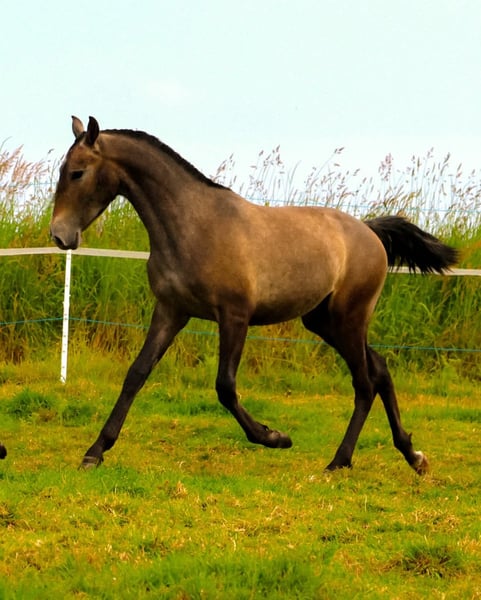 À vendre : Étalon Lusitanien né en 2023 fils de Jasmim Plus par Escorial ( ayant participé aux JO), idéal pour le dressage Nous proposons à la vente un magnifique étalon Lusitanien, né en 2023, qui incarne à la fois élégance et potentiel sportif. Ce jeune cheval, de robe gris clair, possède déjà une présence remarquable et une conformation harmonieuse, typique de la race Lusitanienne, reconnue pour sa souplesse, son endurance et sa finesse. Destiné au dressage ou à l'équitation de travail, il bénéficie d’un bon tempérament, d’une attitude calme et d’une grande capacité d’apprentissage. Sa morphologie lui confère une excellente mobilité et une aptitude naturelle pour le travail en selle. Son pedigree, associé à ses qualités physiques et mentales, en font un futur cheval de haut niveau ou un compagnon idéal pour un cavalier exigeant souhaitant évoluer dans le domaine du dressage. Ce jeune étalon est bien manipulé, longé et prêt pour commencer le débourrage. N’hésitez pas à nous contacter pour plus d’informations ou pour organiser une visite. Ce Lusitanien gris, avec son potentiel évident, saura séduire les amateurs de dressage à la recherche d’un cheval d’exception.