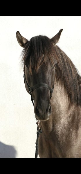 Magnificent Stallion with Beautiful Grey Coat Features: Breed: Luso-Arab (3/4 Lusitano 1/4 Arabian) Gender: Stallion Year of Birth: 2022 Color: Grullo Height: 160 cm, currently, with potential for more growth We are offering an exceptional Lusitano stallion for sale, born in 2022. This impressive young stallion captivates with his rare and fascinating Grullo coloring, making him a true eye-catcher. He presents himself with an elegant and harmonious stature. His noble appearance and friendly, approachable nature make him an ideal partner for ambitious riders and enthusiasts of this noble breed. The stallion shows a willingness to learn and talent, making him a promising candidate for various disciplines. If you are looking for a young, promising Lusitano that impresses both in appearance and personality, then this stallion might be the right horse for you. I can gladly provide additional pictures and videos upon request.