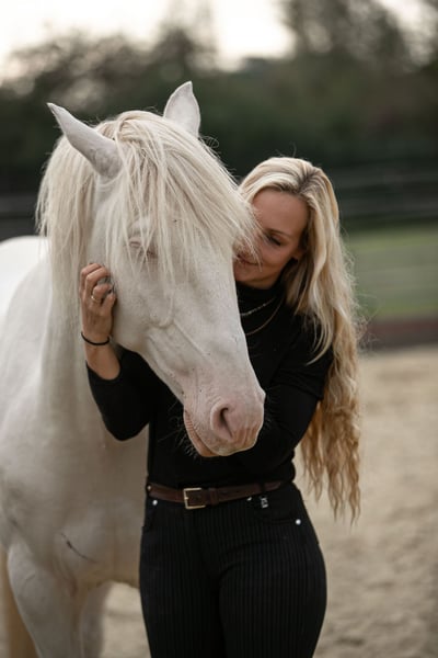 Deze prachtige Lusitano-ruin uit 2022, met volledige APSL-papieren en uitstekende afstamming, zoekt een geweldig nieuw thuis! Vader: 1,76 m, uitstekend gekeurd met onderscheiding, Moeder: 1,63 m, eveneens uit topkweek. Geschat eindmaat ca. 1,63 m, met de stevige bouw van een klassiek, volle Lusitano. Karakter: zeer mensgericht en knuffelbaar, vriendelijk en nieuwsgierig – sociaal in een gemengde kudde, rangnederig en gemakkelijk in de omgang. Hij is een bijzonder makkelijk jongpaard en daarom ook geschikt voor mensen zonder ervaring met jonge paarden. Hij is lief als een ruin en vergeeft de mens al fouten, zelfs nu nog. Hij wil graag alles goed doen en probeert elke taak te vervullen waarop hij wordt aangesproken. Zijn temperament is perfect in balans: hij kan goed actief gemaakt worden, blijft altijd aanspreekbaar, en als er niets van hem gevraagd wordt, kan hij heerlijk ontspannen ronddwalen. Hij is geen Lusitano die werk nodig heeft om niet onrustig te worden. Hij kan zelfs twee weken in de paddock staan en je kunt zo op zijn rug stappen en rijden. Opleiding: leeftijdsgericht en voorzichtig opgebouwd – kent longe, handwerk en is al langzaam aangezad, daarbij is hij zeer makkelijk. Natuurlijk wordt hij in deze leeftijd nog niet dagelijks getraind of gereden! Braaf bij de smid, bij het laden, poetsen en in het dagelijkse omgaan. Stalling: geboren in Nederland en bij mij opgegroeid in Duitsland, diervriendelijk in een paddockbox met paddocktrail en 24 uur weidegang, altijd ruwvoer beschikbaar. Goed getraind, gevoederd en mineralen voorzien. Gezondheid: in de zomer al een goede klinische aankoopkeuring gehad en goede röntgenfoto’s van de benen. Hij kan blijven als hengst of, indien gewenst, gecastreerd worden in de kliniek. Hij kan bij mij blijven voor verdere training. Belangrijk: ik waardeer zijn beste thuis meer dan de prijs. Ik ben geen paardenhandelaar en verkoop hem privé, omdat ik niet genoeg tijd heb voor vier jonge paarden. Voor vragen sta ik altijd graag klaar.