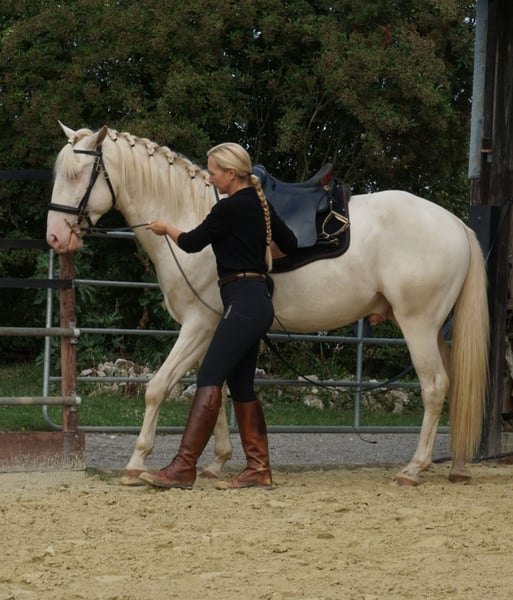 Dieser traumhafte Lusitano-Hengst aus 2022 mit vollem APSL-Papier und exzellenter Abstammung sucht ein tolles Zuhause! Vater: 1,76m, bestens gekört mit Auszeichnung, Mutter: 1,63m, ebenfalls aus bester Zucht. Geschätztes Endmaß ca. 1,63 m mit der kräftigen Statur eines klassischen, txpvollen Lusitanos. Charakter: sehr menschenbezogen und verschmust, freundlich und neugierig – sozial in gemischter Herde, rangniedrig und unkompliziert. Er ist ein absolut einfaches Jungpferd und daher auch für Menschen ohne Jungpferdeerfahrung gut geeignet. Er ist lieb wie ein Wallach und verzeiht auch jetzt schon dem Menschen, wenn der mal Fehler macht. Er möchte einem alles Recht macht und versucht jede Aufgabe zu erfüllen, um die man ihn bittet. Sein Teparament ist genau ausgewogen, man kann ihn gut aktivieren, aber er bleibt immer anprechbar und wenn man nichts von ihm möchte, kann er auch ganz schläfrig bummeln. Er ist kein Lusitano der unbedingt Arbeit braucht, weil er sonst blöd wird. Er kann auch zwei Wochen im Offenstall stehen und man kann sich einfach draufsetzen und losreiten. Ausbildung: altersgerecht und schonend ausgebildet – kennt Longe, Handarbeit und wurde bereits sehr langsam angeritten, dabei ist er super unkompliziert. Natürlich wird er in diesem Alter noch nicht täglich trainiert und schon gar nicht geritten! Brav beim Schmied, Verladen, Putzen & im täglichen Handling. Haltung: in NL geboren und bei mir aufgewachsen in Deutschland, artgerecht im Offenstall mit Paddocktrail und 24h Weide und immer Rauhfutter zur freien Verfügung Bestens geprägt, gefüttert und mineralsiert. Gesundheit: Er hat im Sommer bereits eine gute klinische Ankaufsuntersuchung und gute Röntgenbilder der Beine erhalten. Kann Hengst bleiben oder auf Wunsch in der Klinik kastriert werden. Verbleib bei mir zum weiteren Lernen möglich. Wichtig: Mir ist sein bestes Zuhause wertvoller als der Preis. Ich bin keine Pferdehändlerin und verkaufe ihn privat, da ich vier jungen Pferden zeitlich einfach nicht gerecht werden kann. Für Fragen stehe ich gerne jederzeit zur Verfügung.