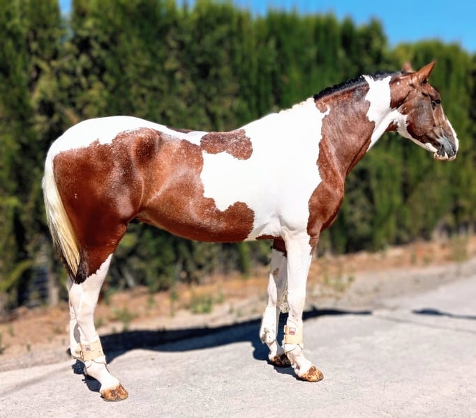 ✨dieser einmalig schön gescheckte Luso Hengst, möchte gern in sein FOR EVER HOME vermittelt werden 🏡 🐎 Barock** Dieser beeineeindruckende & im barocken Typ stehende Gentlemen, zeichnet sich durch seine außergewöhnliche Erscheinung und sein vielversprechendes Potenzial aus. Er vereint er die typische Lusitano-Charakteristik mit dem Adel des Hispano Pferdes. Seine harmonische Oberlinie, seine edle Kopfzeichnung und seine ausgeprägte und sanfte Präsenz. Der Schecke besticht durch seine auffällige Fellzeichnung, die ihn zu einem echten Blickfang macht. Trotz seines jungen Alters zeigt er bereits eine vielversprechende Basisausbildung und ist einfach zu r reiten. Somit auch für schwächere Reiter geeignet. Seine barocke Konstitution verleiht ihm eine elegante und zugleich robuste Erscheinung, ideal für Zucht, Freizeit oder Working. Dieser Hispano -Lusitano-Hengst ist ein echtes Schmuckstück für jeden Liebhaber barocker Pferde, der Wert auf Qualität, Charakter und Ausstrahlung legt. Bei Interesse freuen wir uns auf Ihre Kontaktaufnahme ( bitte mit WhatsApp Nummer) , um weitere Details zu besprechen und eventuell auch einen Besichtigungstermin zu vereinbaren. Wir arrangieren auch gern den Transport für Euch 🚛✈️ Wir haben eine große Auswahl an verschiedenen Pferden vom Fohlen bis zum Gran Prix Pferd.