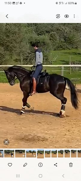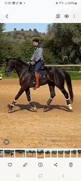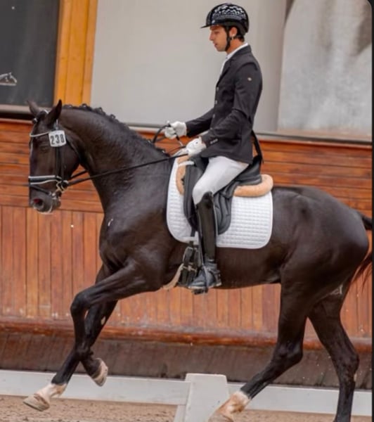 Mooie zwarte hengst te koop. Rustig, zeer energiek, prachtige bewegingen. Zeer goede afstamming, vader en grootvader hebben wereld- en olympische kampioenschappen in drainage gewonnen. Zeer snelle leerling.