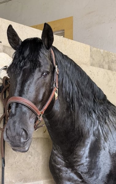 🌟 QATAR 🌟 Balanced, high-quality, with a classic Lusitano pedigree QATAR Features: - Breed: Lusitano - Gender: Stallion - Year of Birth: 2020 - Color: Black (Rappe) - Height: 15.5 hh - Health: Excellent X-ray results ⸻ A young Lusitano stallion that impresses with his calmness, honesty, and a very distinguished lineage – a horse that has been consciously developed and now benefits from it. ⸻ 🎓 Training Level: - Lunged in walk, trot, and canter - Started late to allow physical and mental maturity - Calm, straightforward, and clear in work - Solid basic training with a focus on sustainability - Very comfortable to sit and easy to ride QATAR was deliberately started late to give him time to grow – and this is clearly reflected today in his composure and clarity under saddle. ⸻ 🧠 Character & Handling: - Very good, calm temperament - Honest, refined, and uncomplicated - Not nervous or skittish - Pleasant in daily handling - A horse that inspires trust and provides security A true dependable Lusitano that gives his rider a good feeling 🤍 ⸻ 🩺 Health: - Clear X-ray results with no findings - Age-appropriate development - Solid and correct conformation ⸻ 🧬 Pedigree: ✨ Sire: JUAZEIRO - Licensed with over 75 points - From the renowned Ortigão-Costa line - Over 70 registered offspring - One of Portugal’s most famous and proven bloodlines ✨ Dam: ANGOLA - Elegant black mare - Passes on type, quality, and a pleasant temperament ⸻ 🎯 Who is QATAR ideal for? - Ambitious leisure riders - Amateur riders seeking a reliable Lusitano - Riders who value character and honesty - Also promising for future sport potential ⸻ ⭐ Summary: QATAR is an honest, calm Lusitano stallion, convincing with his classic pedigree, very pleasant temperament, and sustainable training. A horse you can enjoy now – with great potential for further development 🌟 ⸻ 📞 Contact & Viewing: QATAR can be visited and test ridden by appointment. I look forward to serious inquiries and am happy to take the time for a personal conversation.