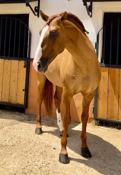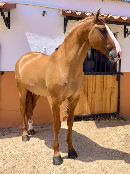 The golden horse 💛 Oro is a piro free 7-year-old Lusitano stallion standing at 165 cm, with a very rare color genetic; he is a red dun and has full APSL papers. Not only does his gold shimmery color stand out, but his heart is also made of gold. This horse has such a big heart and noble soul that you will fall in love with him immediately. Friendly, calm, patient, and very well educated. A complete dream. Absolutely safe and bombproof, a horse to enjoy. Oro is a perfect choice for working equitation, shows, or classical dressage. He has normal movements and is capable of lateral work, flying changes, and piaffe. He is located in Spain 🇪🇸 For more information, please contact via PM or WhatsApp at 00491786997334. Jasmin from Top-Lusitanos🤗
