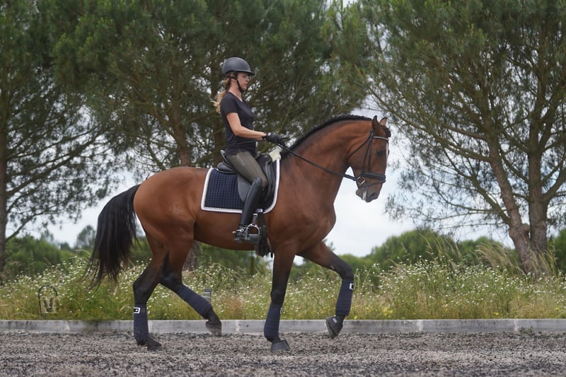 Oásis is an eye catcher with a heart of gold!!! He has great gates and is eager to learn! Very balanced in his mind! Not a nervous type. Amazing competition mentality!! He gives stunning offsprings with both Lusitano mares and warm blood mares!!!