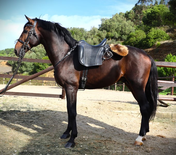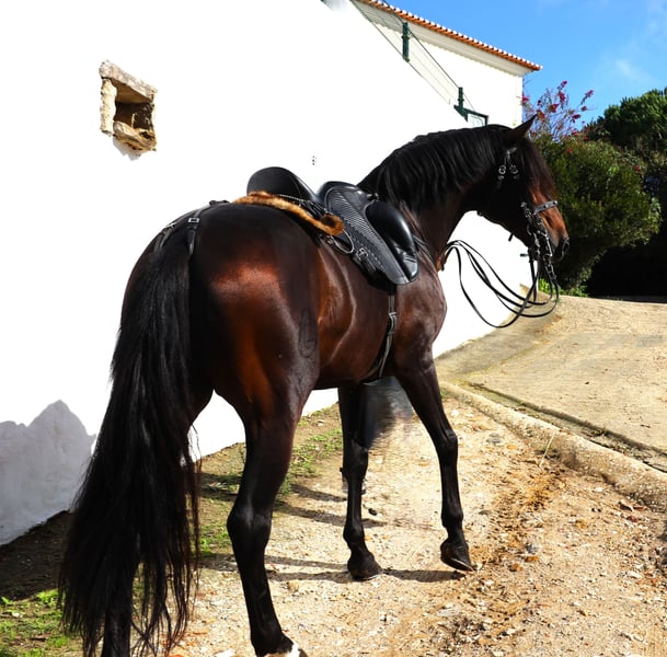 Es cómodo de montar y puede ser montado prácticamente por cualquiera, también apto para jinetes mayores, ya que no tiene moggins, es trabajador y suave al sentarse, y además de ser bonito y expresivo, tiene unos movimientos preciosos, un carácter fantástico y un buen tamaño. Se le ha montado con seguridad y ahora está empezando el entrenamiento para clases más difíciles.