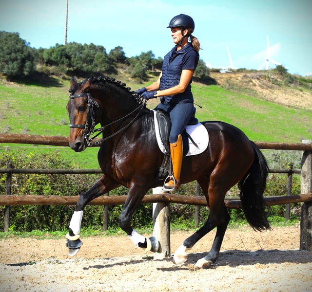 He is comfortable to ride and can be ridden by practically anyone, also suitable for older riders, as he is not shy, hard-working and soft to sit, and apart from being beautiful and expressive, he has beautiful movements, a fantastic character and a good size. He has been ridden safely and is now starting further training for more difficult lessons.