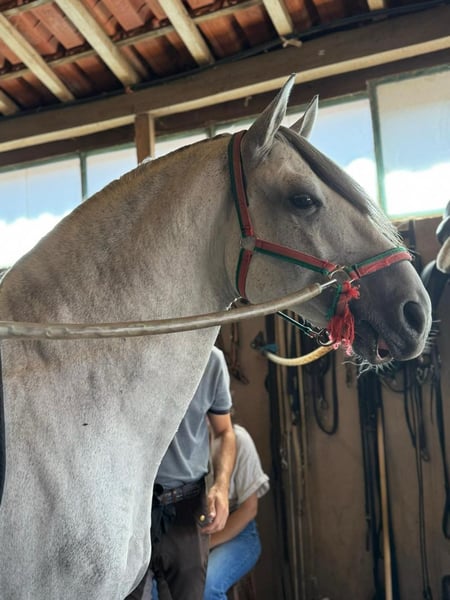 What a horse 😍 This is a 8yro baroque Lusitano stallion with 163cm and high functionality. This kind of Lusitanos are more and more difficult to find. The perfect combination of movements, type, functionality and character. He comes from a breeder in Spain who is breeding torros bravos, Lusitanos with old bullfighting bloodlines and producing wine. It’s a very traditional place with a strong selection of approved genetics. This stallion shows all characteristics we wish in a good Lusitano. Strength, agility, rideability, intelligence, noblesse and kindness. A horse for an amateur but also a professional rider. He is doing flying changes, lateral work, piaffe, passage and started with canter pirouettes. Perfect for Working Equitation and classical dressage. Located in Portugal 🇵🇹 More informations over PM or whatsapp 00491786997334. Jasmin from Top-Lusitanos 🤗